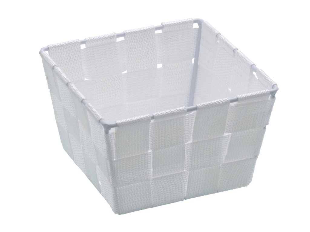 Kleiner quadratischer Korb in modischem Weiß verleiht dem ganzen Haus einen neuen Look.