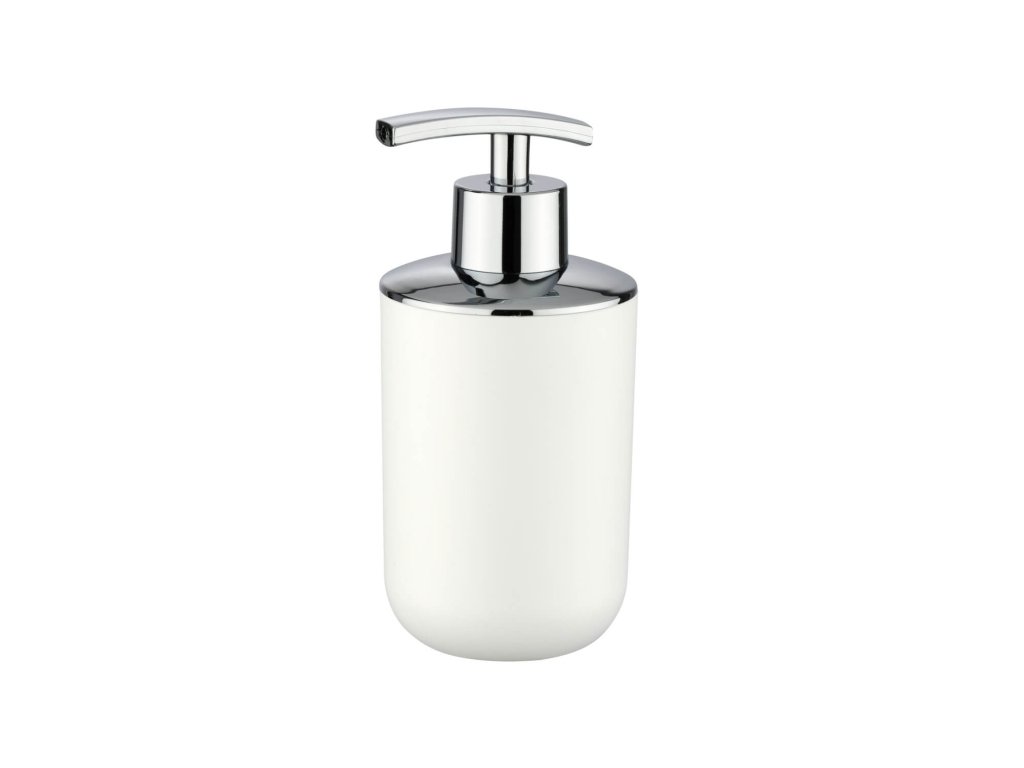 Das abgerundete Design verleiht jedem Bad eine besondere Note. Dank seiner glatten Oberfläche ist der Seifenspender besonders leicht zu reinigen und damit hygienisch. Die verchromte Platte bildet einen attraktiven Kontrast zum weißen Grundmaterial.