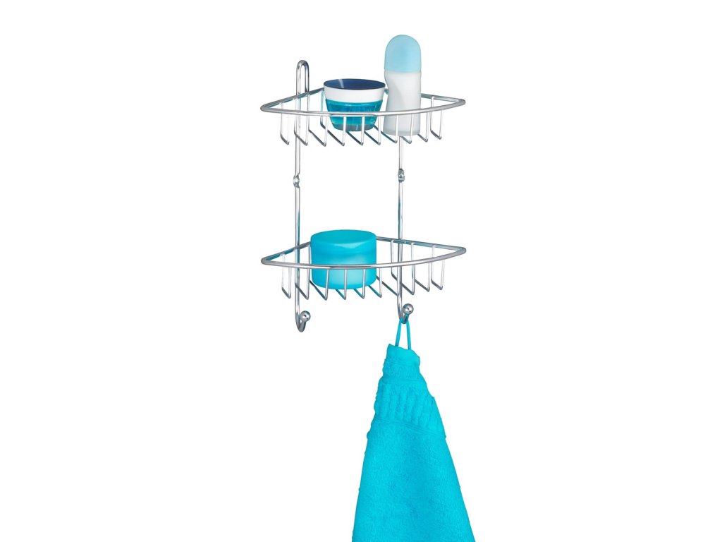 Zwei zusätzliche Haken ermöglichen das Aufhängen von Handtüchern etc. Das dekorative Eckregal ist äußerst robust und stabil. Befestigungsmaterial (Schrauben und Dübel) ist im Lieferumfang enthalten.