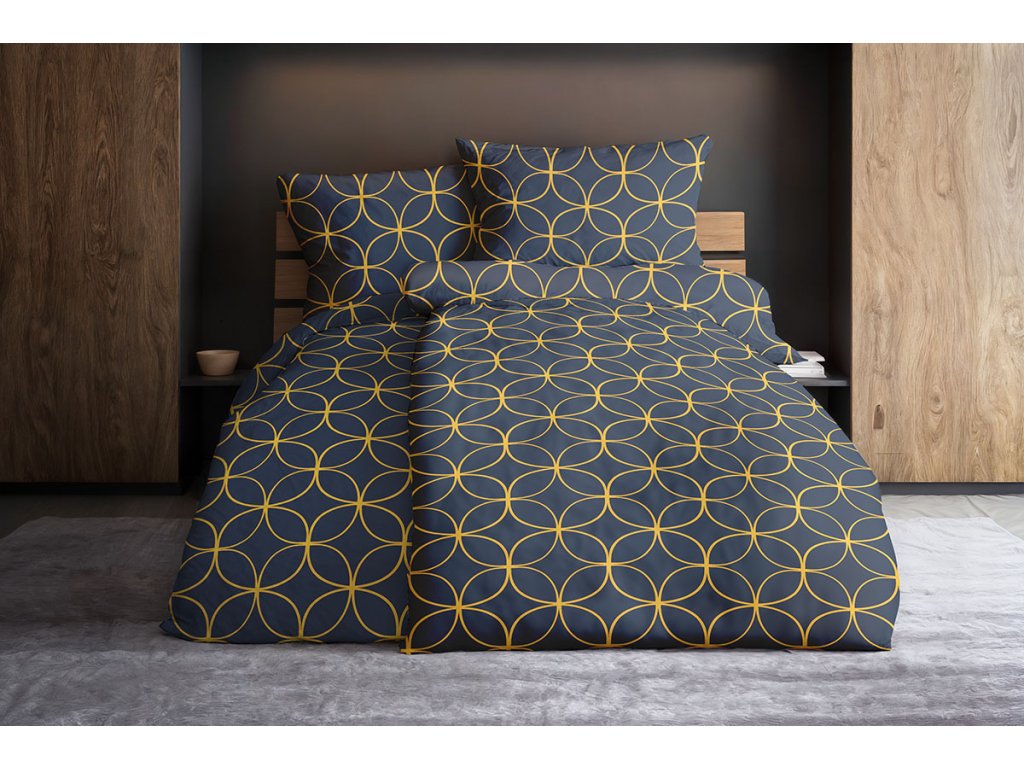 100 % Baumwollsatin fühlt sich weich an, ist atmungsaktiv und zu jeder Jahreszeit angenehm zu tragen. An heißen Sommertagen kühlt es Sie und im Winter hält es Sie warm. Die dicht gewebten 100 % Baumwollfasern sorgen für den für Satin typischen dezenten Glanz. Der praktische Reißverschluss macht das Wechseln der Bettwäsche zum Kinderspiel. Die Farben Dunkelblau und Gold verleihen ihr einen exklusiven Look.