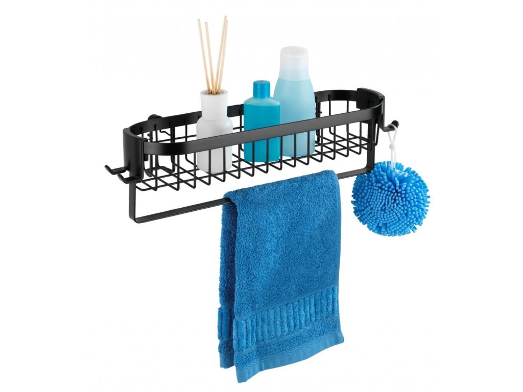 Die innovative Classic Plus Black Serie von WENKO verbindet beliebte Formen mit höchster Qualität. Die Badaccessoires dieser Stahlserie sind mit einer schwarzen Spezialbeschichtung versehen, die einen hochwertigen Schutz vor Korrosion bietet. Die moderne Badserie im industriellen Stil verleiht jedem Raum einen Hauch von Klasse und Eleganz. Das Classic Plus Black Large Wall Shelf bietet zusätzlichen Stauraum im Bad oder in der Gästetoilette und ist ideal für die Aufbewahrung von Badaccessoires, die bisher keinen festen Platz hatten. Dank dieses dekorativen Regals sind alle wichtigen Utensilien wie Shampoo, Duschgel, Cremes, Parfüm usw. gut organisiert und immer in Reichweite. Die beiden Doppelhaken, die an beiden Seiten des Regals angebracht sind, sind auch eine praktische Lösung zum Aufhängen von Handtüchern oder Geschirrtüchern in der Küche.