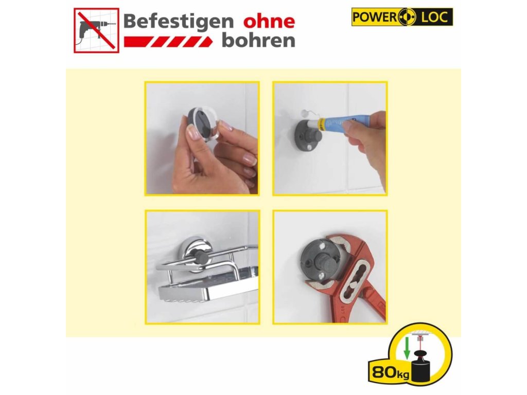 Der elegante Power-Loc® Toilettenpapierhalter aus der Laceno Design-Badserie überzeugt durch seinen hochwertigen Edelstahl und die praktische Staubschutzhülle. Die Toilettenpapierrollen werden einfach auf den Halter geschoben. Das Turbo-Loc® Klebesystem bietet dekorative Bad-Accessoires und Ablagen, die einfach an der Wand befestigt werden - ohne Schrauben, Bohren oder Dübeln. Das Power-Loc®-Befestigungsprogramm zeichnet sich durch einen extrem festen Halt auf allen geeigneten Untergründen wie Fliesen, Naturstein, Glas, Beton, Metall, Holz und vielen Kunststoffen aus.