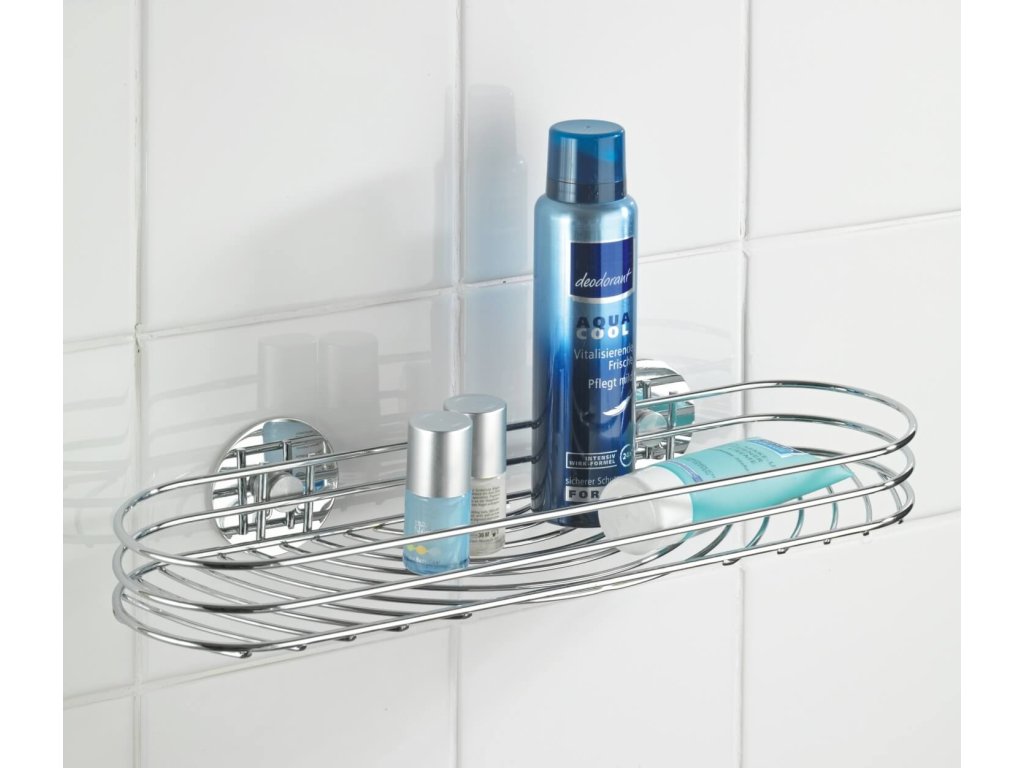 Das dekorative Turbo-Loc® Ablage-Maxi-Regal ist ideal für die Montage über dem Waschbecken und besteht aus stabilem und hochwertigem verchromten Stahl.