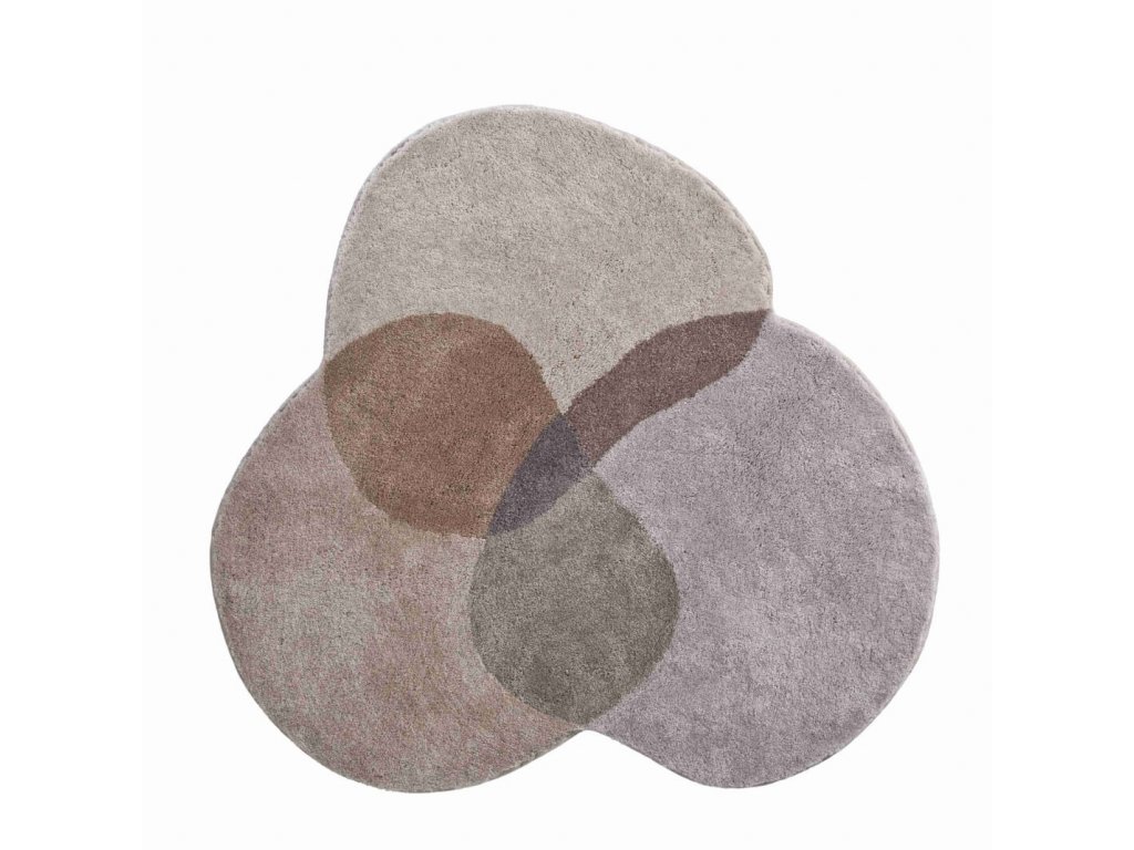 Motto Badezimmermatten SHAMBALA:Drei Kreise, die miteinander verbunden sind und eine Einheit bilden. Die Farben vermischen sich dort, wo sie zusammenkommen, und fügen der entstehenden Palette neue, dunklere Farbtöne hinzu. Eine Matte mit einem Hauch von Pastellfarben wird im Bad und im Wohnzimmer geschätzt.