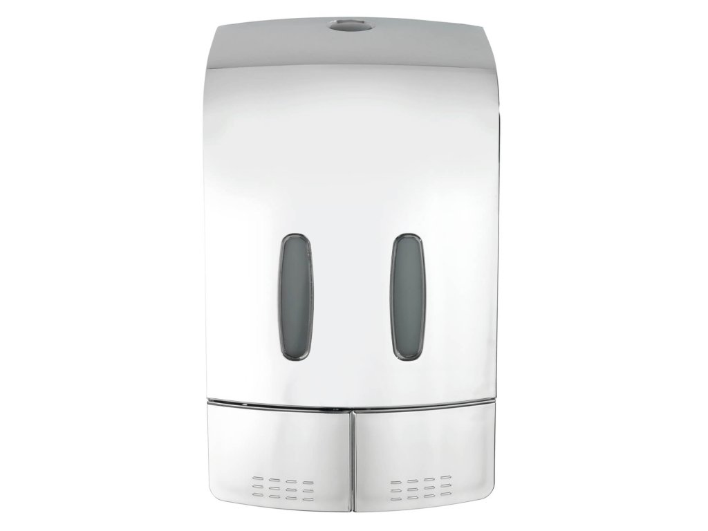 Der Seifenspender ist tropffrei, leicht zu reinigen und die beiden Kammern mit einem großzügigen Fassungsvermögen von insgesamt 960 ml lassen sich einfach nachfüllen. Die Restmenge kann jederzeit durch das Fenster eingesehen werden.