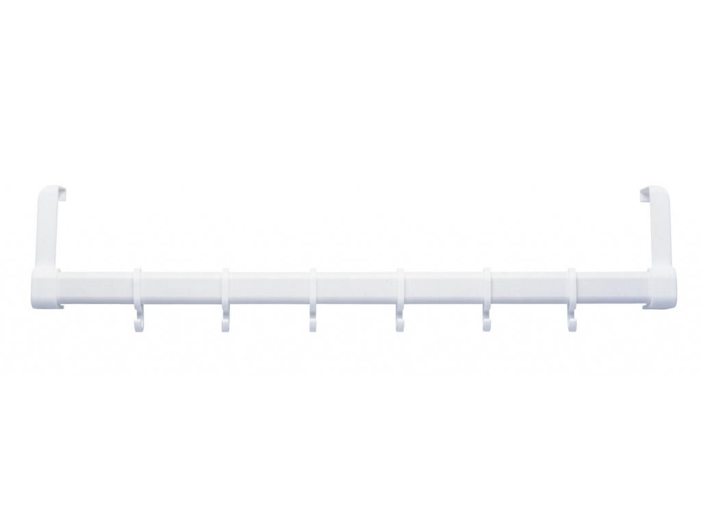 Praktischer Tür-Kleiderständer ist aus strapazierfähigem weißem Kunststoff hergestellt. Mit seiner unauffälligen Optik passt er zu jeder Einrichtung und schafft zusätzlichen Platz im Flur, Schlafzimmer oder Bad.